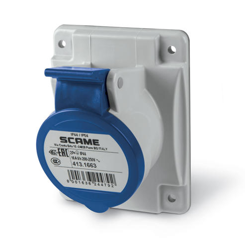 Промишлен контакт 2P+Е 16A 230V IP54 серия Optima панелен монтаж 70х87мм Scame